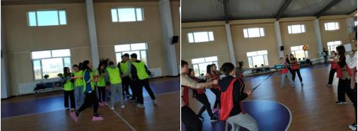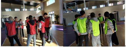 在开营仪式后,同学以红蓝两队进行了木桶原理、能量传输、同心鼓等六项比赛。