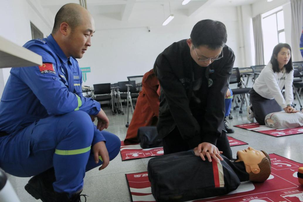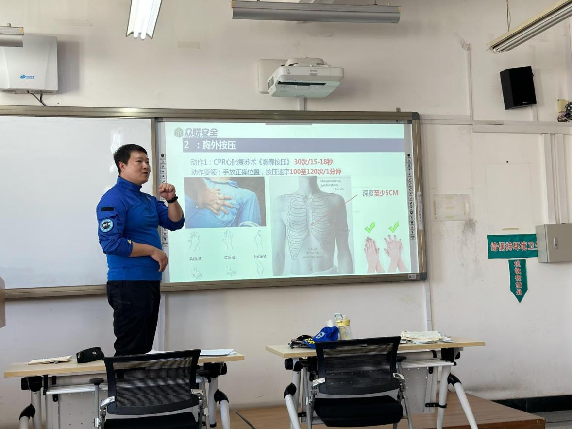 05月07日,大连理工大学人文与社会科学部MPA教育中心2021级MPA1班特别邀请大连高新区蓝天救援队走进大工,举办应急响应培训,结合实际真实案例,传播心脏复苏、AED使用方法和海姆立克的急救知识。