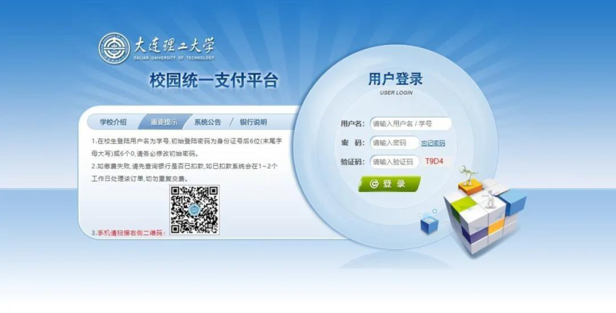 (1)校园统一支付平台缴费:http://pay.dlut.edu.cn 登录网站即可。