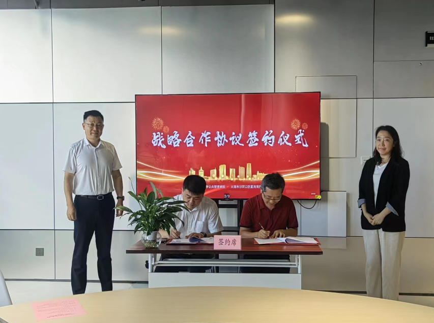 签约仪式上,王欢明院长与星海湾街道主任王再鹤主任正式签订了《大连理工大学教学实习协议书》和《大连理工大学公共管理专业学位研究生联合培养实践基地战略合作协议书》。