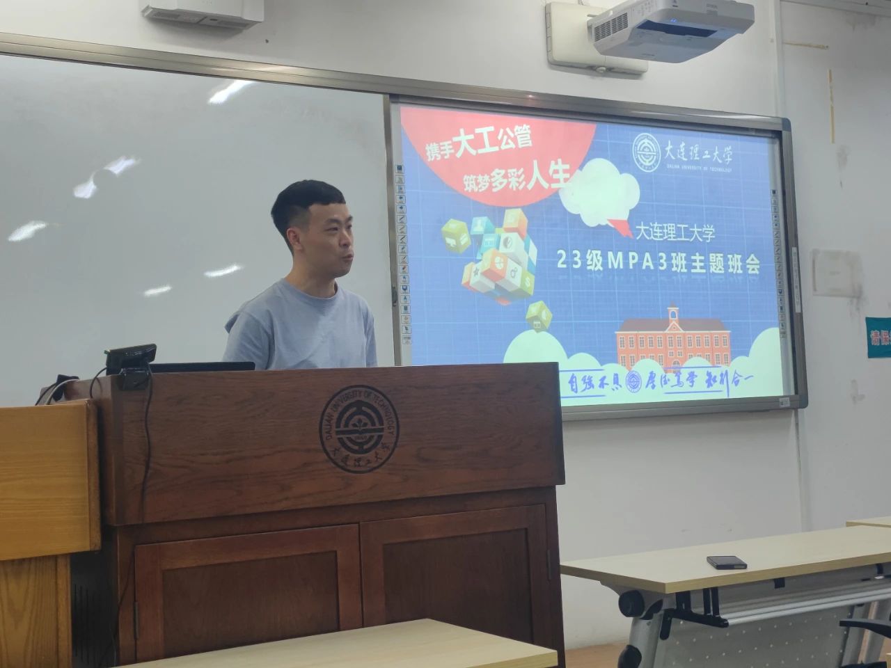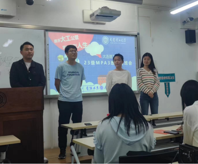 班主任王勇臻老师对2023级MPA3班新生表示热烈欢迎。王老师首先对班级同学的工作现状和学习情况进行摸底了解,并提出三点希望:一是走出舒适圈。选择“不一样”的生活方式,要做好时间、精力、金钱的平衡,在大工可以学有所得;二是走好学习路。要正确处理与任课教师、论文导师之间的关系。充分把握教育历程新阶段、迈上事业成长新台阶。三是共赴未来。希望同学们可以尽快融入大工文化,发展班级文化,收获友谊,掌握本领,顺利完成学业。