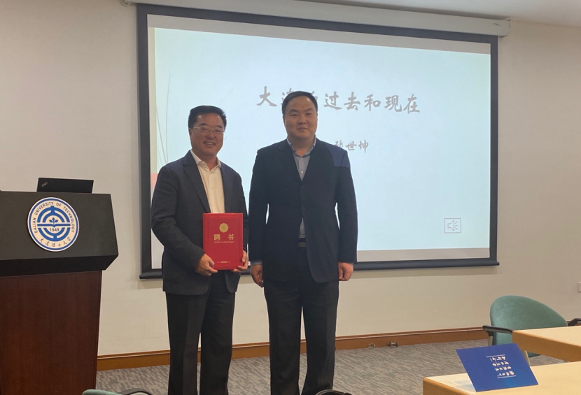 会上人文学部党委书记李鹏为张世坤教授颁发大连理工大学公共管理硕士(MPA)实践导师聘书。