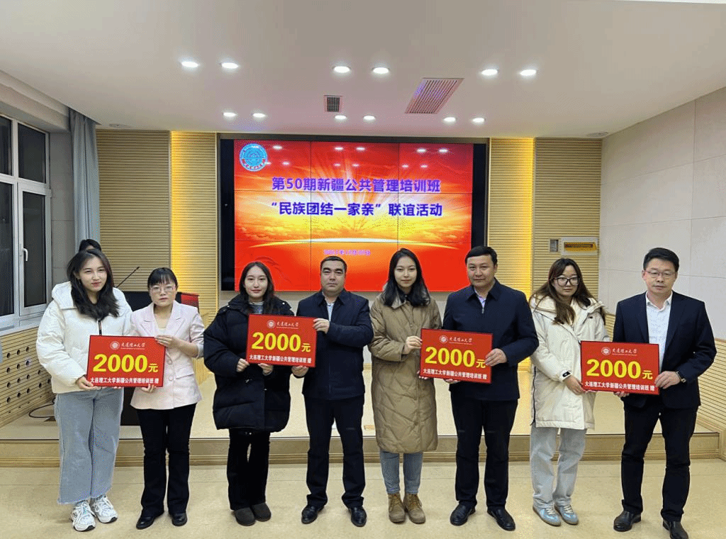 接着,新疆培训班学员代表为受捐助的新疆籍少数民族学生颁发捐助牌匾。本次新疆干部培训班捐款2.4万元,帮助12名少数民族学生。