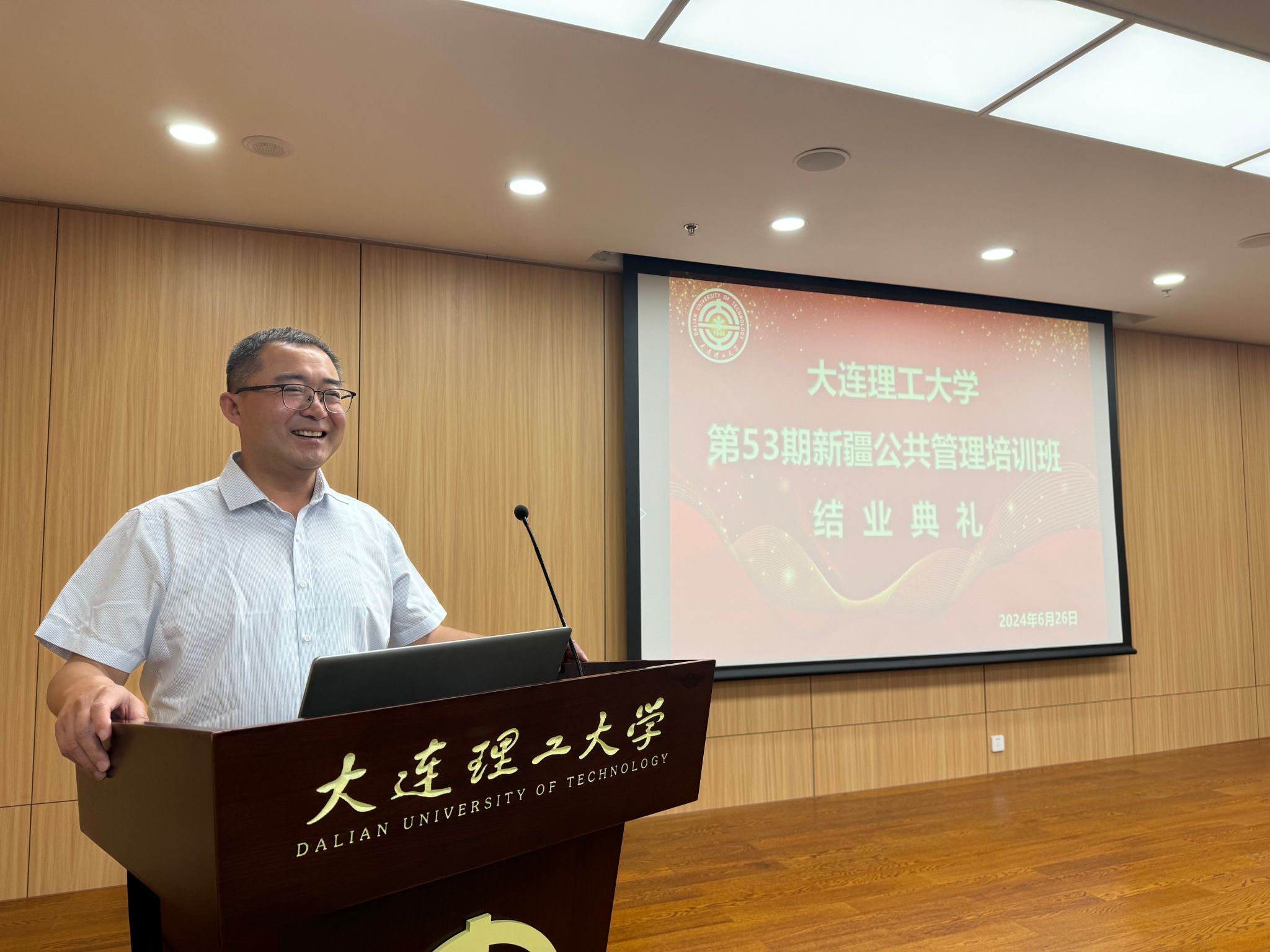 公共管理学院院长王欢明表示,此次培训在自治区党委组织部、自治区工信厅的精心组织和班委的密切配合下取得了圆满成功。他鼓励学员们将所学知识运用到实际工作中,为推动新疆的跨越式发展贡献力量。同时感谢员们们对大工少数民族学生的帮扶和支持,并希望学员们回到新疆后,能够分享他们在大工的学习经历,积极宣传大工的优质教育资源平台,促进新疆与大工之间的友好交流和合作,愿各位学员在今后的岗位上发光发热,为新疆的繁荣和国家的强盛贡献自己的智慧和力量。